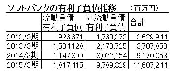 ソフトバンクは、2012年に2兆6千億円だった借金が2015年に11兆円まで激増しています。この理由として考えられるのが、アリババの上場を見越した資産で巨額の借金を抱え込んだ事です。2兆円だった借金は、一気に11兆円に急増しています。