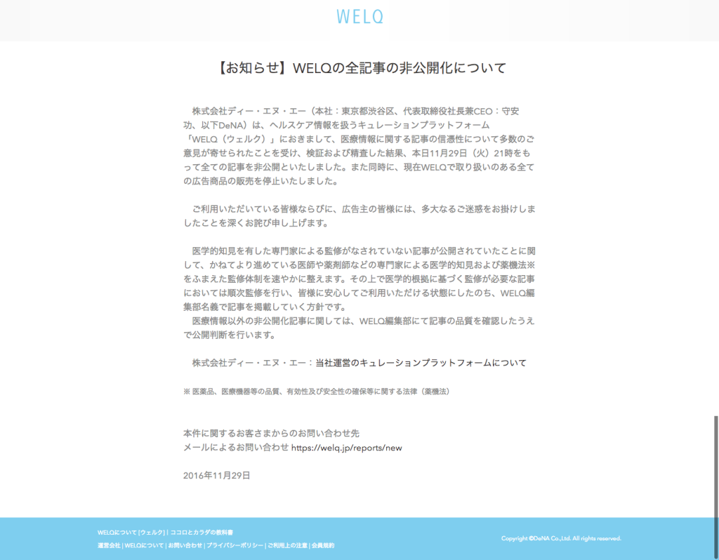 DeNAが運営するWELQ閉鎖から、DeNAパレット事業10サイトが全滅!記者会見に9サイト運営の村田マリ氏が現れず。