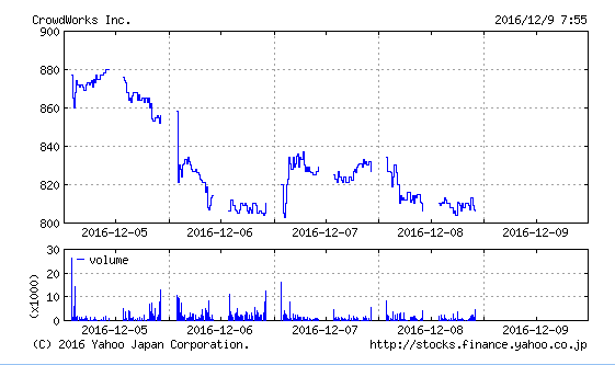 クラウドワークスの株価