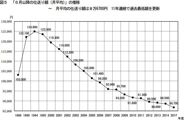 最近の大学生は、授業以外の場所でアルバイトする学生が多くなっています。両親の仕送りが減っているので、アルバイトをしないと生活が成立しなくなってきているからです。アルバイトをしたとしても、ほとんど生活費にしか使えないような悲惨な状況になっている事が浮き彫りになっています。特に2010年頃からその傾向が強まっている事がグラフからも読み取れます。