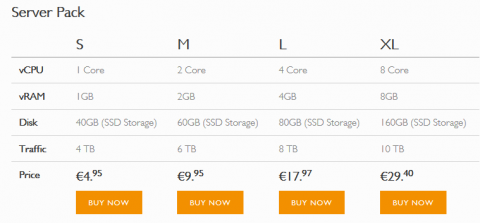 Products > CloudsでVirtual Seraverがあり、40GBで€5という事になっています。Trafficについて制限が付いているところに注意が必要です。