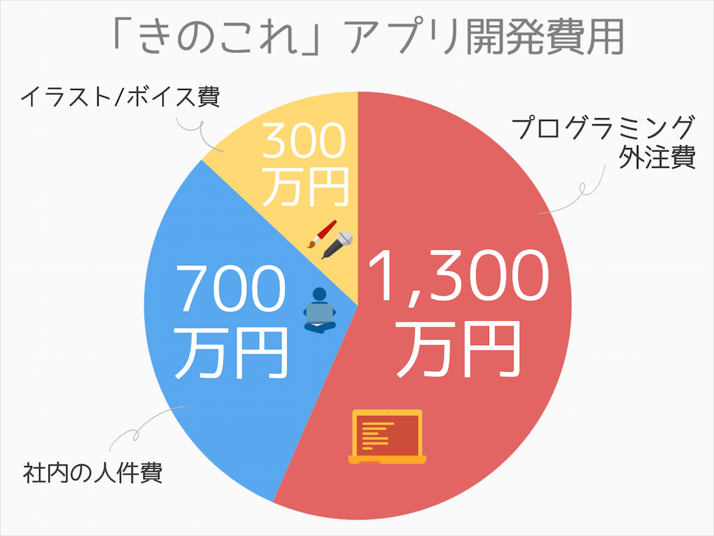 『きのこれ』アプリ開発費用には、1300万円ほどがかかっていて、社内の人件費も700万円もかかっています。社内で2000万円をかけて開発していたらどうなっていたのだろうと思ったりします。